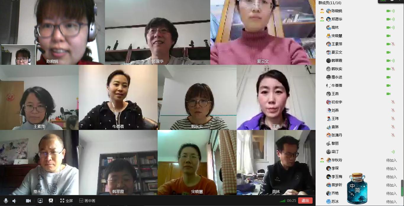 这是教师们首次通过视频在线的方式开展的集体备课活动,有效地解决了因疫情而导致的交流不便,延续了大学外语教学部集体备课的传统,做到了“疫情虽在难阻挡,集体备课不停止”,为疫情期间教师间的互相学习、交流和教学质量的保障提供了载体。
