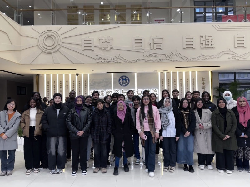 随后,同学们前往特殊教育与康复学院。在讲解员的引导下,大家回顾了我校自1985年开创中国残疾人高等教育先河的历程,深入了解“残健融合、教康结合”的滨医模式。从无障碍图书馆、视障生专用教室,到数字化口腔设计平台与康复技术展厅,先进的设施与人性化的设计让留学生们频频驻足。学院在支持残疾学生实现医师梦想、开展社会康复服务等方面所做出的努力,也深深打动了在场的每一位同学。